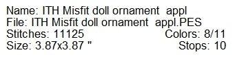 2025 ITH Misfit doll Christmas ornament applique machine embroidery design