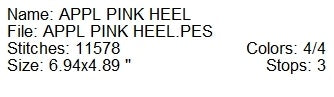 Applique pink high heel machine embroidery design