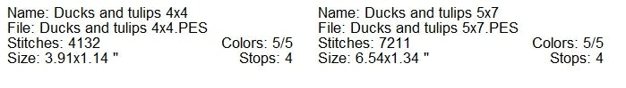 Ducks and tulips machine embroidery design 2 sizes