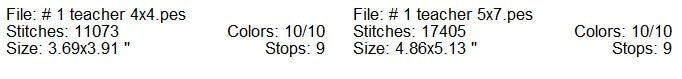 Number 1 teacher with apple and pencil machine embroidery design 2 sizes
