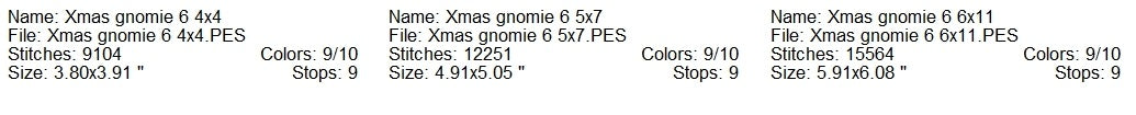 Xmas Gnome 6 machine embroidery design 3 sizes