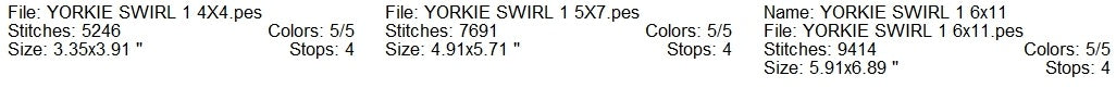 Yorkie swirl 1 machine embroidery design 3 sizes
